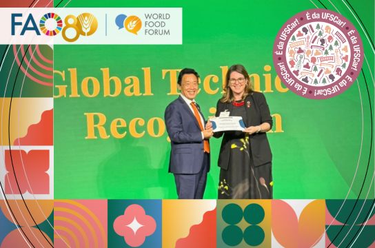 A Fazenda Escola Lagoa do Sino (FELS) e o projeto Transição Tropical, atividades de extensão desenvolvidas no Campus Lagoa do Sino da UFSCar, receberam nesta quarta-feira (15/10) reconhecimento da Organização das Nações Unidas (ONU) como iniciativas dotadas de excelência técnica em produção agrícola sustentável e transformação tecnológica para avanço da segurança alimentar. A entrega foi feita em evento na programação do Fórum Mundial de Alimentação, que acontece ao longo de toda a semana em Roma, na Itália, celebrando os 80 anos da Organização das Nações Unidas para Alimentação e Agricultura (FAO).